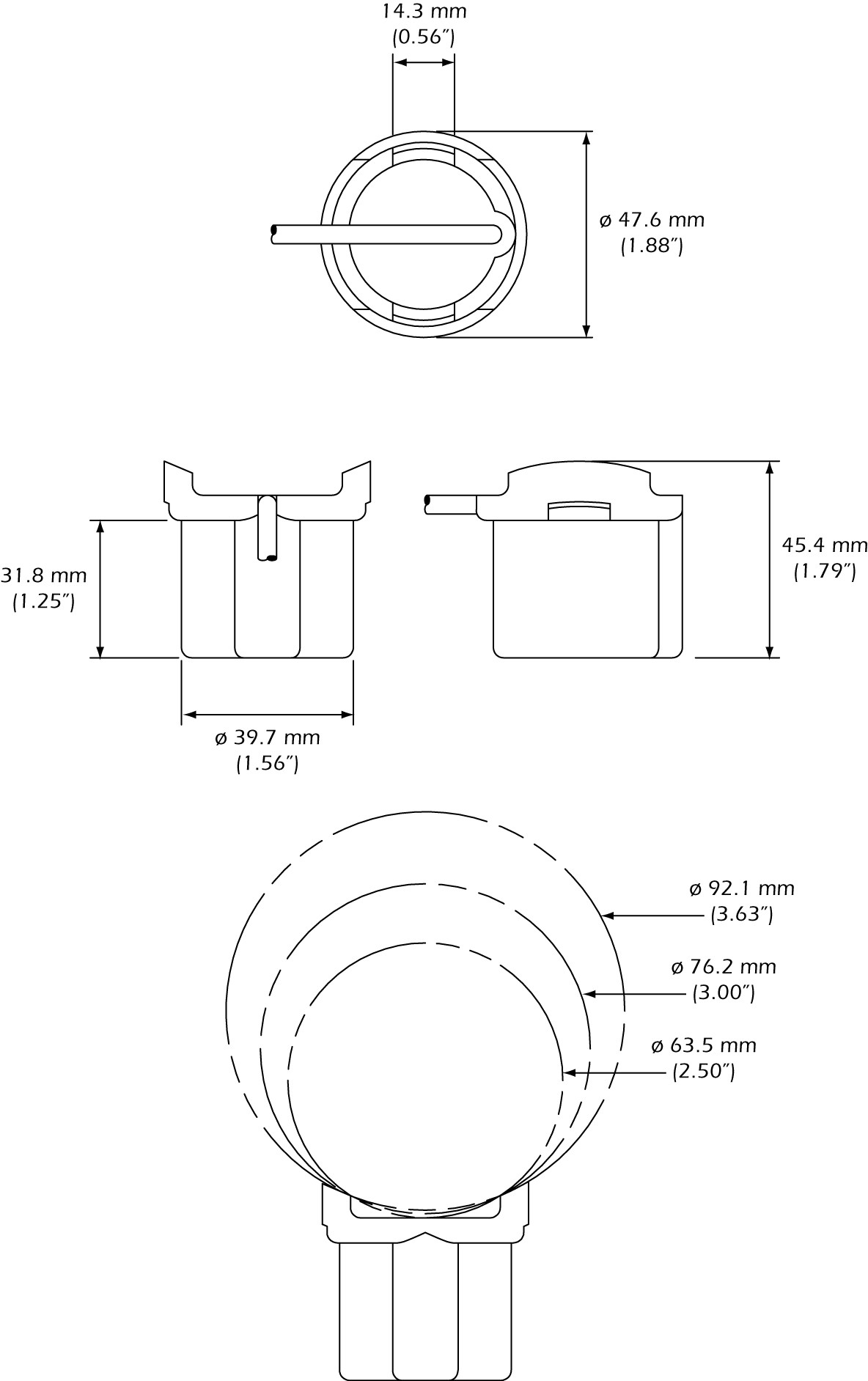 - Trolling-motor mounting kit includes: 112 mm (4”) stainless steel band clamp and cable ties