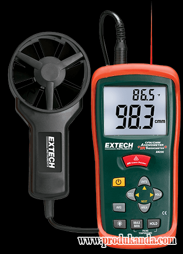 - CFM/CMM Thermo- Anemometer with built-in non-contact IR Thermometer measures remote surface temperatures to 500°F (260°C) with 8:1 distance to spot ratio and Laser Pointer