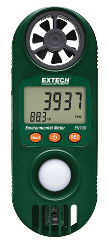 - Built-in sensors measure Air Velocity, Air Flow, Temperature, Humidity, Wet Bulb, Dew Point, Heat Index, Wind Chill, Barometric Pressure, Altitude, and Light