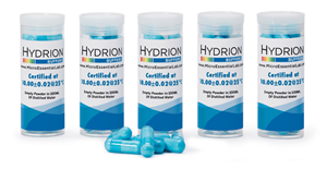 Hydrion Buffer Capsules are perfect for quick and easy pH meter calibration. When mixed with distilled or de-ionized water, a Hydrion Buffer Capsule will accurately produce 100 ml. of solution at pH 10.00. Hydrion Buffers are free flowing soluble powders that prepare clear solutions in minutes.