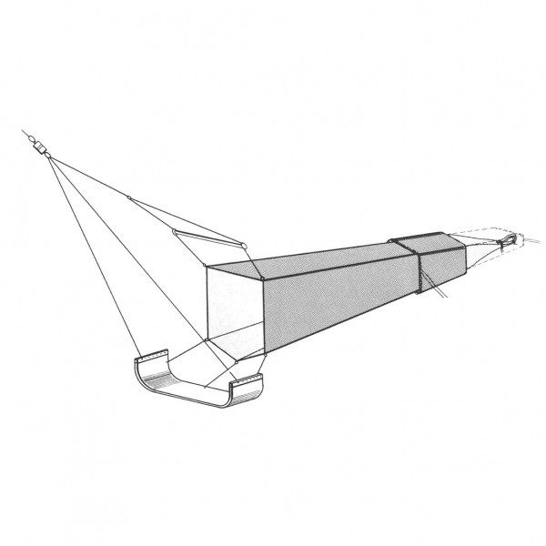 The IKMT Isaacs-Kidd Midwater Trawl Net (also known as HPN Hamburg Plankton Net) is the standard net for collection of larger quantities of macrozoplankton and micronekton. A wide U-shaped diving vane (depressor) keeps the mouth of the net open and exerts a depressing force, keeping the trawl net in any desired depth for extended periods at towing speeds from 0.5 to 4 knots.Due to the design of the bridle and the position of the spreader bar the mouth opening of the net is unobstructed by the towing cable.For the security of the IKMT a predetermined breaking-point has been constructed into the bridle, which makes the net collapse when the dynamic pressure becomes too strong. The IKMT is equipped with a net bag of MOnyl with 500 micron mesh size. The mouth opening of the net comes to 7 m², the overall length is 10 meters. The fine-meshed net is supported by a coarse-meshed covering net and 5 webbings along the net.