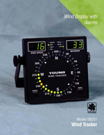 Wind speed is displayed in your choice of units: KNOTS, MPH, KM/H, M/S. Maximum wind speed is also shown. Wind direction information is clearly displayed on a circular compass pattern of LEDs. Multicolored segments give a quick visual indication of current direction and variability. Front panel brightness control allows adjustment for best viewing in any light. A variety of inputs and outputs including 4-20 mA, Serial (RS-485), and Voltage are standard on the Wind Tracker. Alarms for both wind speed and wind direction are standard. The Wind Tracker is very compact for easy mounting on vertical bulkheads or wall surfaces.