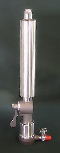 This stainless steel bomb has a special type plug valve between the air and liquid chamber. Complete less gauge. The weight is 6 pounds.